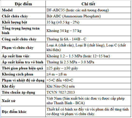 Thông Số Kỹ Thuật Của Bình Chữa Cháy Xe Đẩy Bột ABC 35Kg Defire