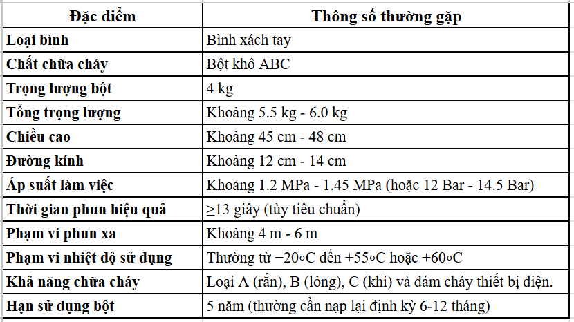 Thông Số Chi Tiết Của Bình Chữa Cháy Bột ABC 4Kg Miha