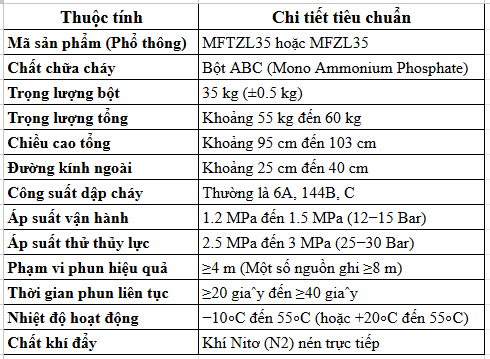 Thông Số Kỹ Thuật Của Bình Chữa Cháy Bột ABC 35Kg Victory