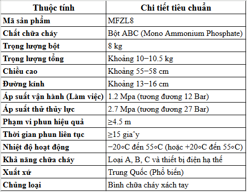 Thông Số Kỹ Thuật Của Bình Chữa Cháy Bột ABC 8Kg Victory