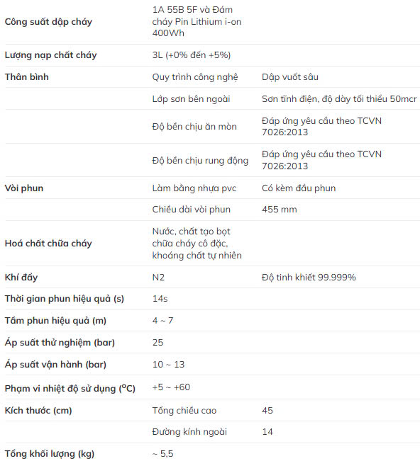 Thông Số Kỹ Thuật Của Bình Chữa Cháy Pin Lithium ORION 3L OR-3 Dành Cho Xe Điện Vinafoam