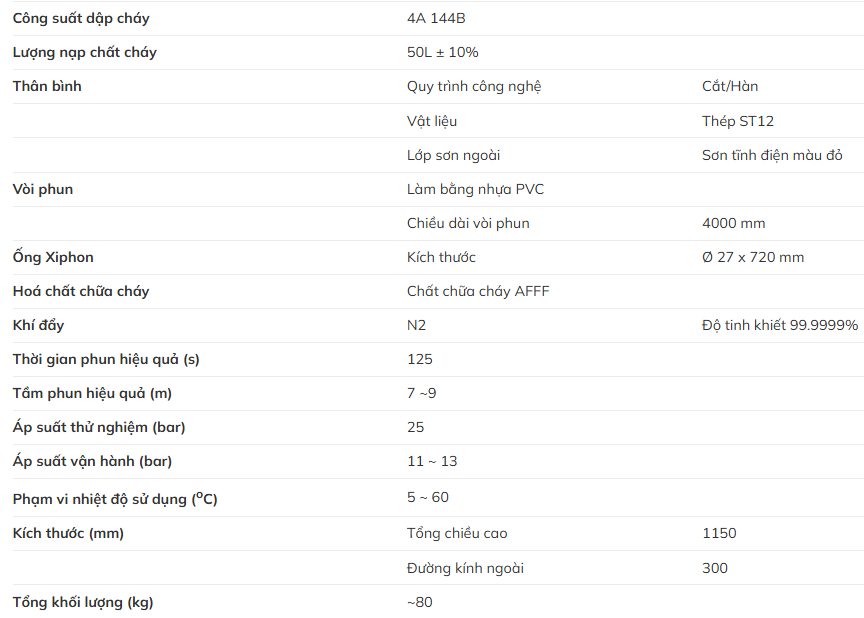 Thông Số Kỹ Thuật Của Bình Cứu Hỏa Bọt Foam Xe Đẩy 50L VF50 Vinafoam