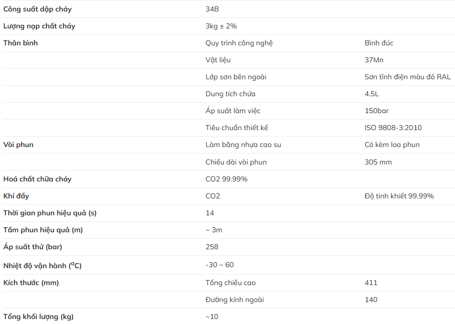 Thông Số Kỹ Thuật Của Bình Cứu Hỏa Khí CO2 3Kg CMC3 Vinafoam