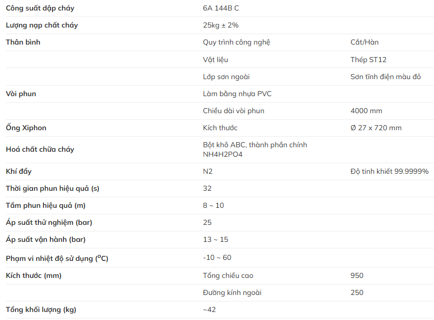 Thông Số Kỹ Thuật Của Bình Cứu Hỏa Xe Đẩy Bột ABC 25Kg Vinafoam