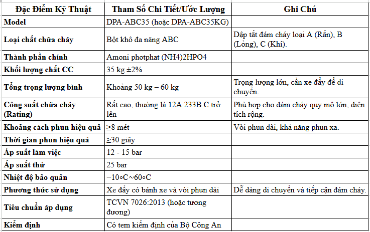 Thông Số Kỹ Thuật Của Bình Chữa Cháy Bột Xe Đẩy ABC 35Kg Dolphin