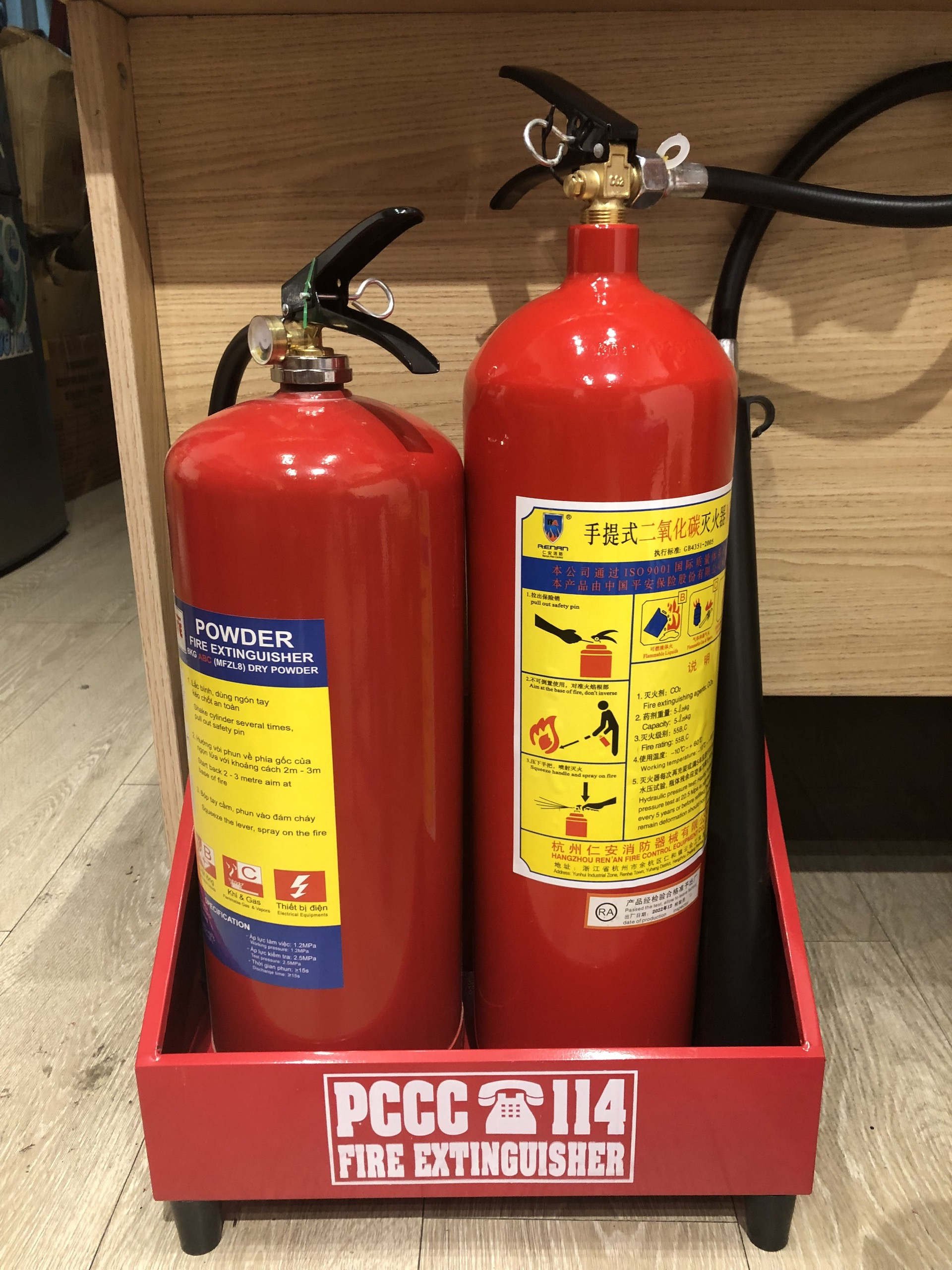 Bình chữa cháy dành cho nhà xưởng gồm có nhiều loại bột và khí co2:
