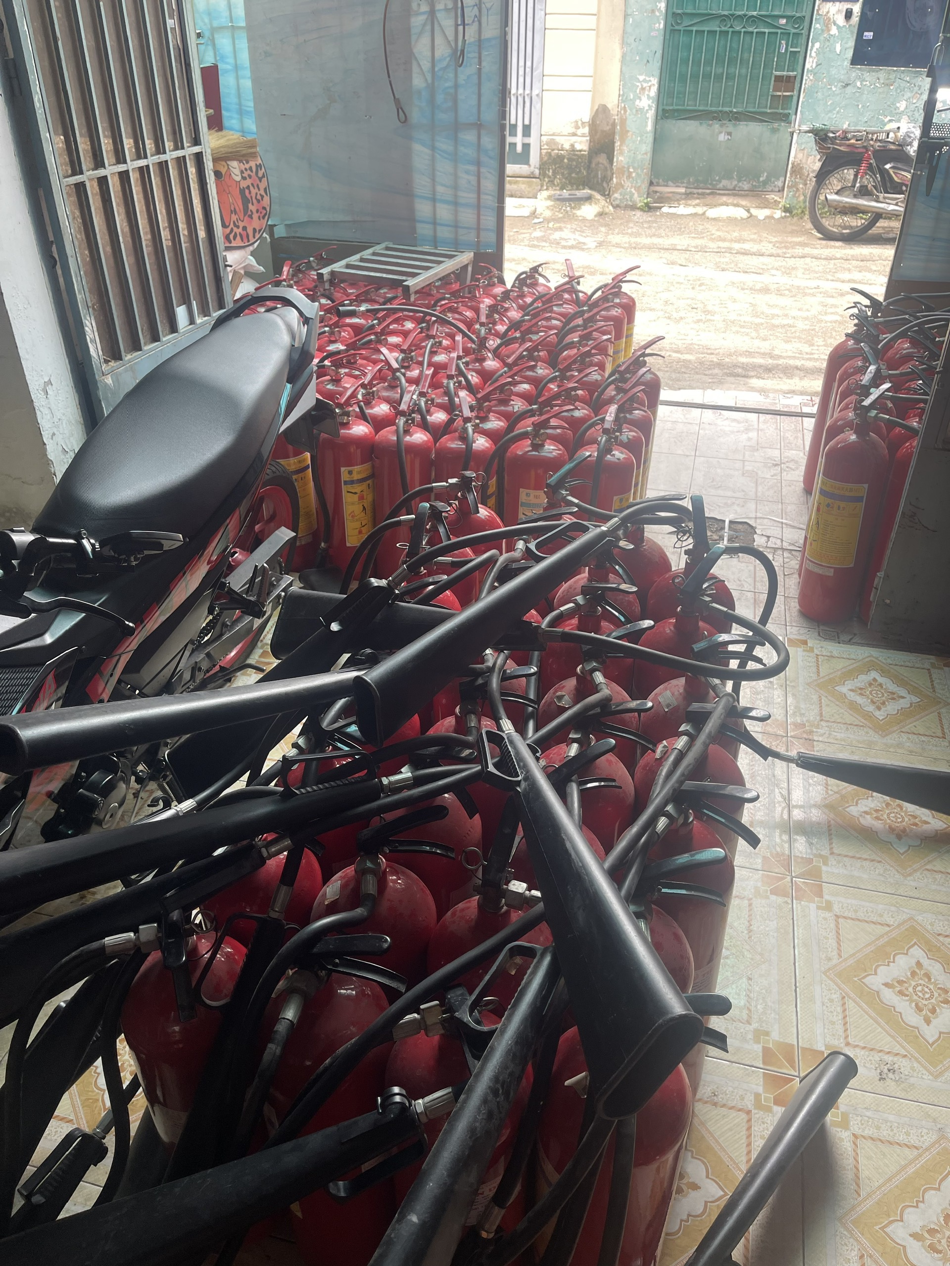Bình chữa cháy được trang bị và chưa sử dụng nhưng đã hết thời hạn bảo hành.