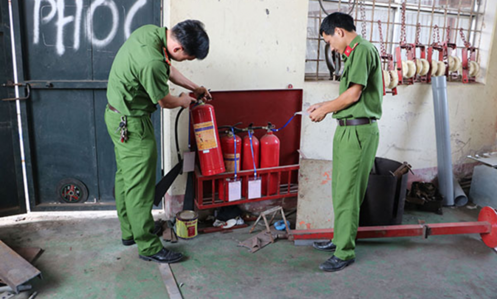 Lực lượng chức năng kiểm tra bình chữa cháy
