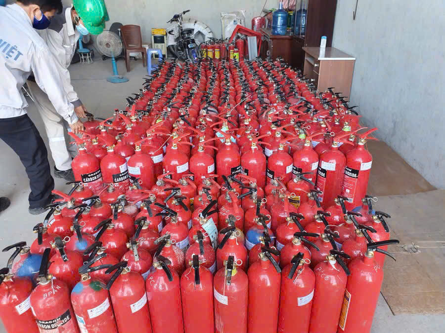 - Bước 6 – Nạp chất chữa cháy mới: Cân chính xác bột hoặc nạp CO₂ bằng cân đóng. Sai số cho phép ±2 %.