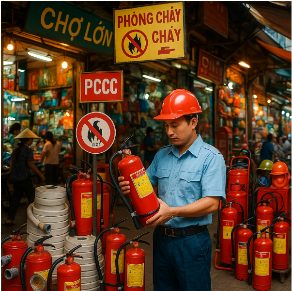 Nhắc đến Phường Chợ Lớn – khu vực kinh doanh, buôn bán sầm uất bậc nhất TP.HCM – người ta nghĩ ngay đến những con phố chằng chịt nhà kho, cửa hàng, chợ truyền thống cùng hệ thống dây điện đan xen. Mật độ dân cư dày đặc, nguồn nhiệt sinh ra từ các bếp ăn công nghiệp, máy hàn cắt kim loại hay những bếp than rải rác… tất cả tạo nên nguy cơ cháy nổ luôn rình rập. Trong bức tranh ấy, bình cứu hỏa chỉ là một vật dụng nhỏ bé, lặng lẽ đứng ở góc tường, nhưng lại là “phao cứu sinh” quyết định sinh mạng và tài sản nếu hỏa hoạn bùng lên.