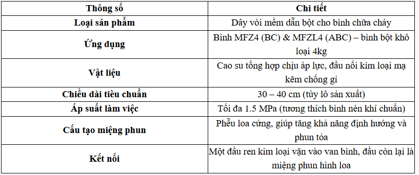 Thông Số Kỹ Thuật Của Dây Loa Bình Chữa Cháy Bột 4Kg