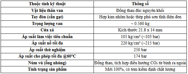Thông Số Kỹ Thuật Của Van Đầu Bình Chữa Cháy CO2