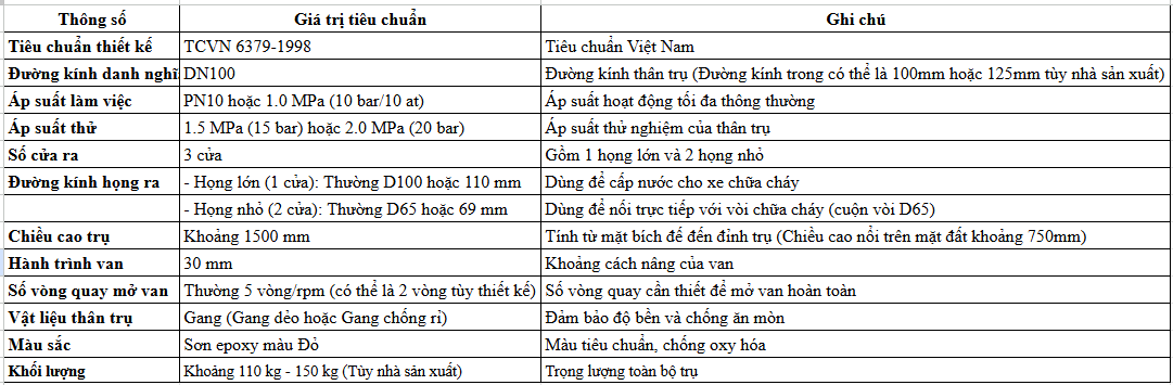 Thông Số Kỹ Thuật Của Trụ Cứu Hỏa 3 Cửa D100 - Bộ Quốc Phòng
