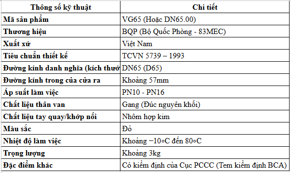 Thông Số Kỹ Thuật Của Van Góc Chữa Cháy D65 Bộ Quốc Phòng