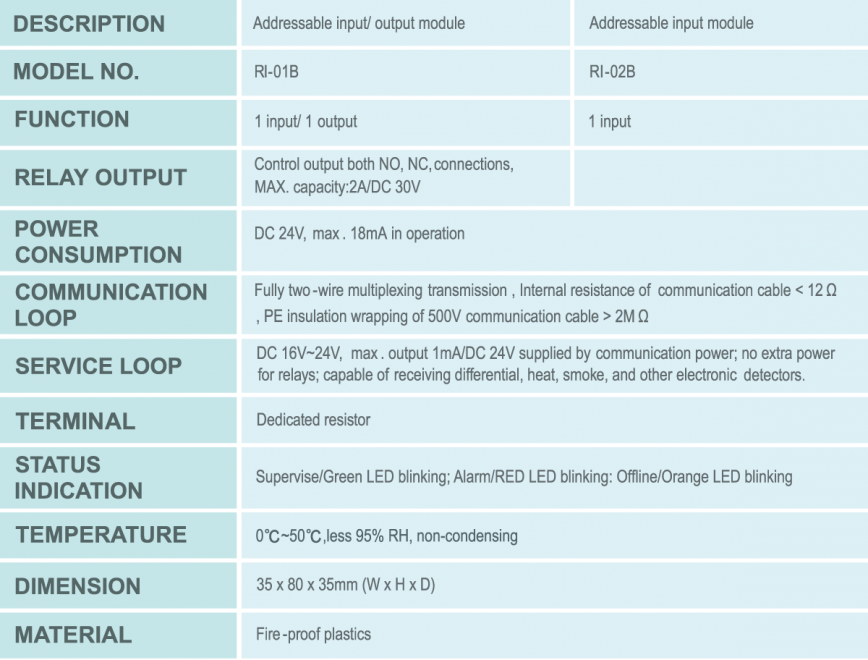 Thông Số Kỹ Thuật Của MODULE Mở Rộng Báo Cháy Địa Chỉ RI-01B Và RI-02B Chungmei