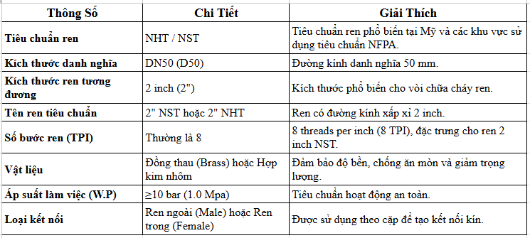 Thông Tin Chi Tiết Của Đầu Nối Chữa Cháy Kiểu Mỹ NHT DN50