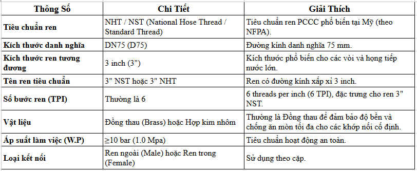 Thông Tin Chi Tiết Của Đầu Nối Chữa Cháy Kiểu Mỹ NHT DN75
