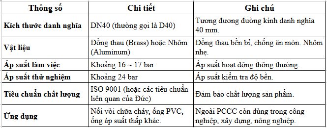 - Là phần nối trực tiếp với vòi chữa cháy DN40 (Ø42 mm).