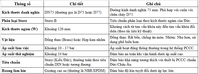 Thông Tin Chi Tiết Của Khớp Nối Vòi Chữa Cháy Kiểu Đức Storz DN75