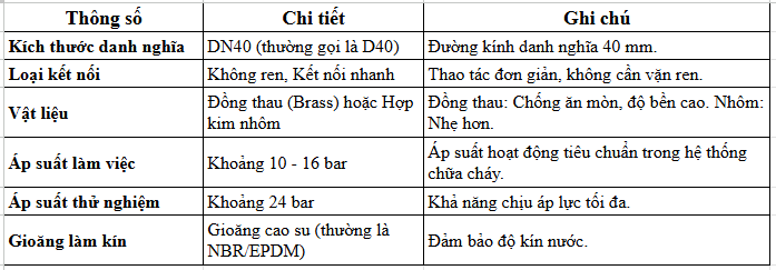 Thông Tin Chi Tiết Của Khớp Nối Vòi Chữa Cháy Kiểu VANDEL DN40