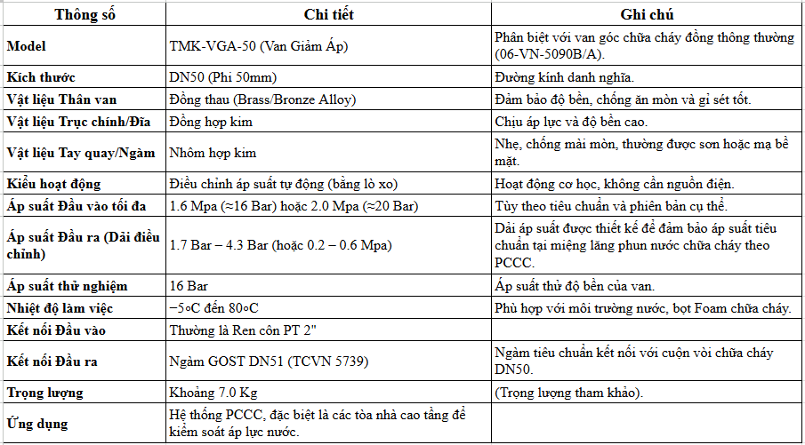 Thông Tin Chi Tiết Của Van Giảm Áp Đồng DN50 Tomoken TMK-VGA-50