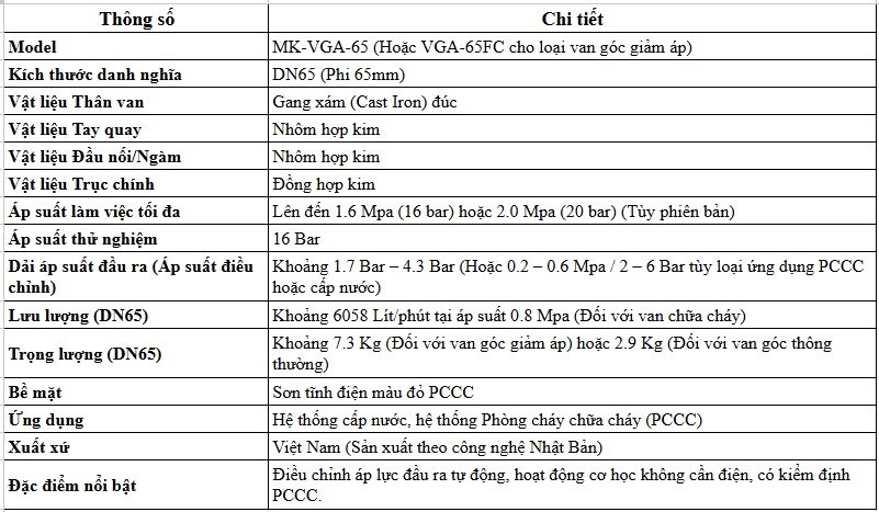 Thông Số Chi Tiết Của Van Giảm Áp Gang DN65 Tomoken MK-VGA-65
