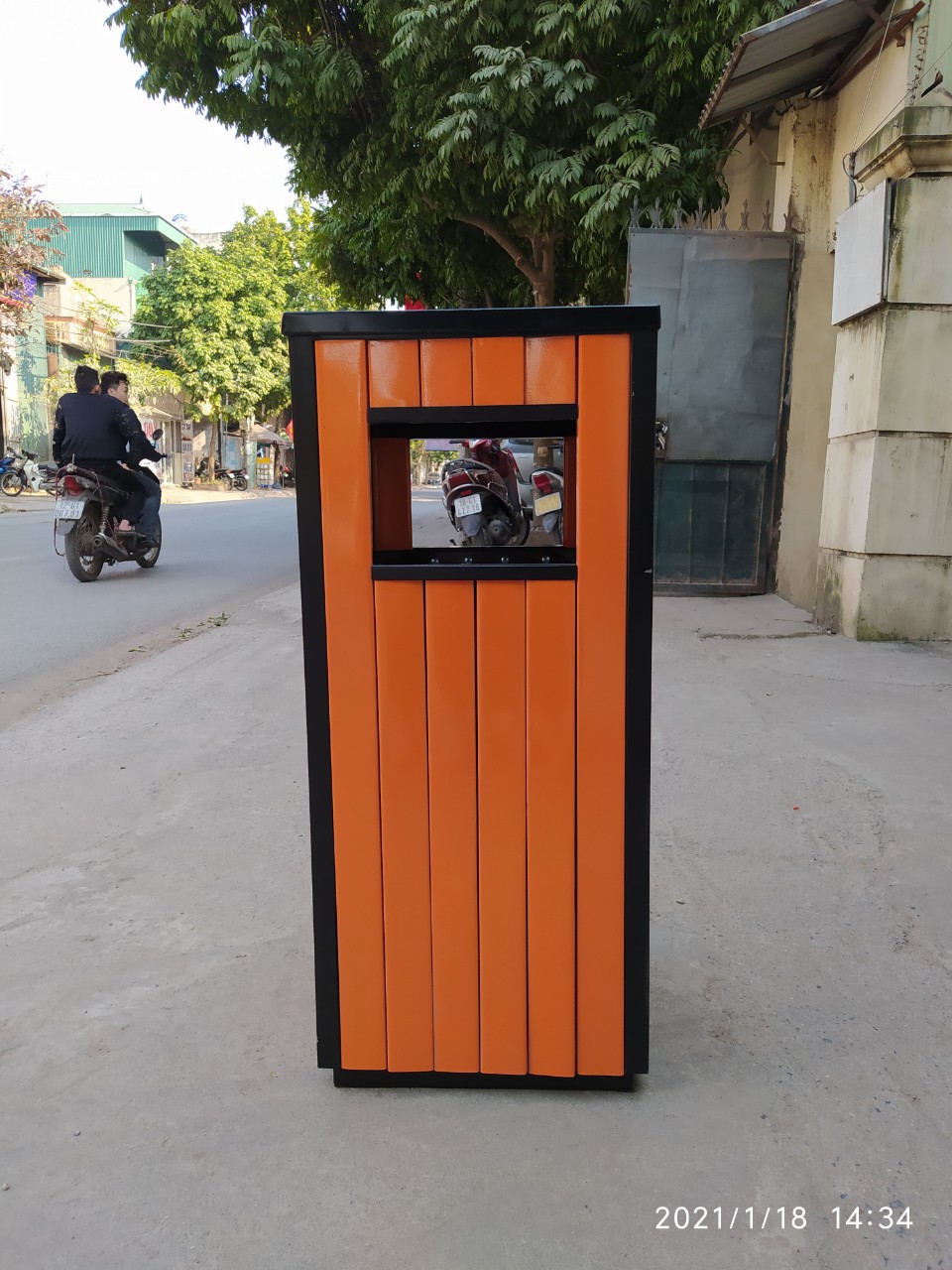 Màu cam tươi sáng không chỉ thu hút sự chú ý mà còn dễ dàng nhận diện từ xa. Điều này giúp người dân dễ dàng tìm thấy thùng rác, khuyến khích họ vứt rác đúng nơi quy định.