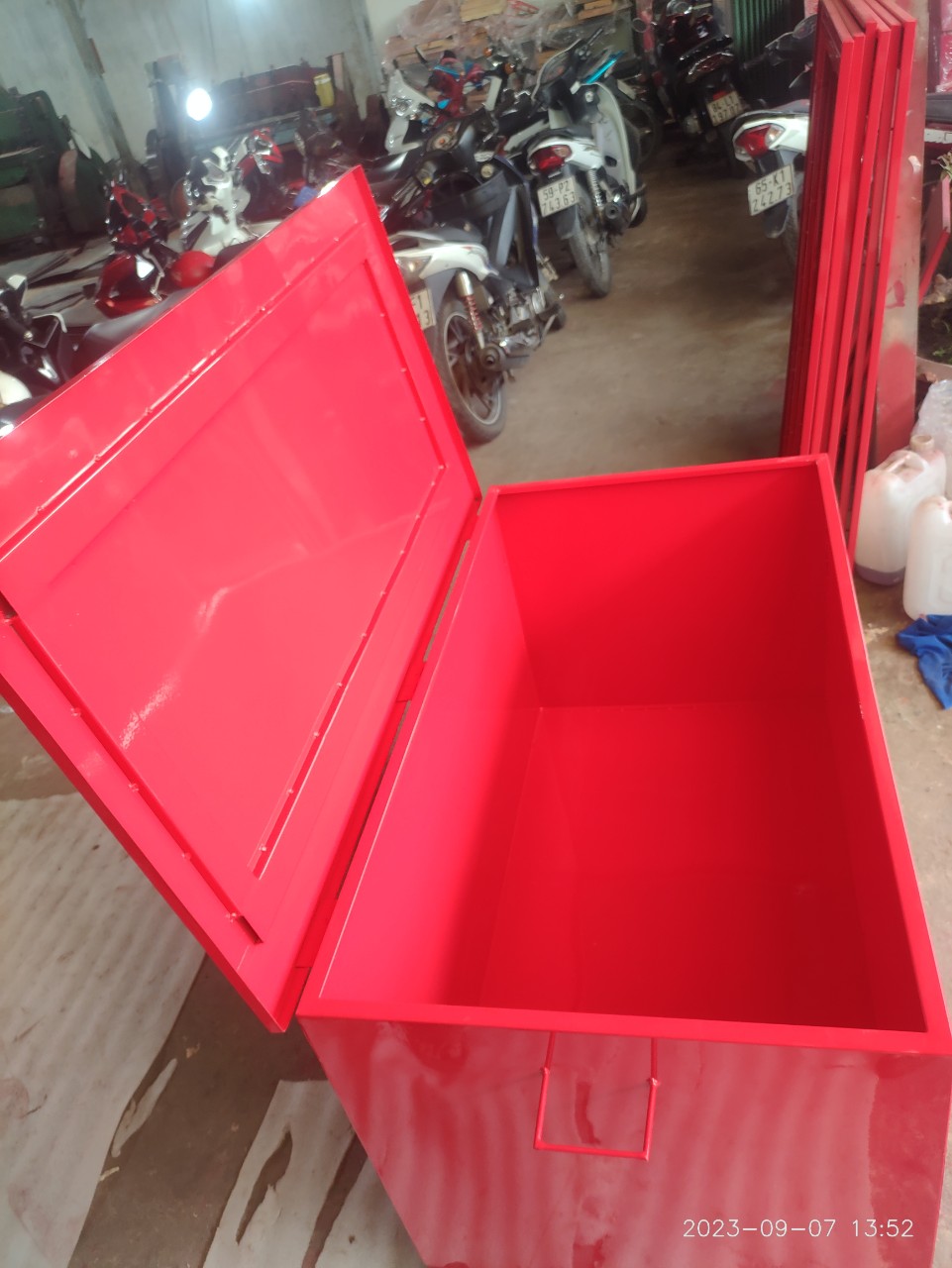 1. Bảo vệ cát: Thùng có nắp giúp bảo vệ cát bên trong khỏi bụi bẩn, ẩm ướt và các yếu tố môi trường khác. Điều này giúp duy trì tính hiệu quả của cát khi sử dụng để dập tắt lửa.